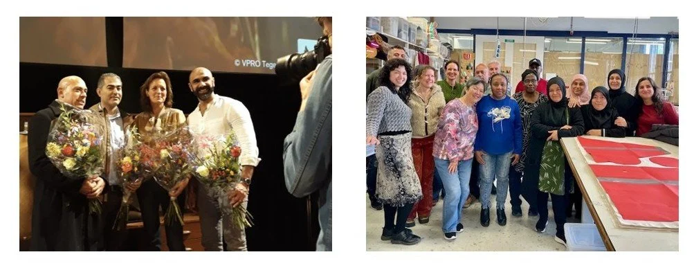 8 jaar geleden vroegen Najib Khalil, Ibrahim Aibash en Maytham Al Saedi of ik ze wilde helpen met het opzetten van een atelier zodat zij als kleermakers in NL aan de slag zouden kunnen. We zijn zonder hulp van fondsen gewoon gestart. Later konden we alsnog rekenen op tijdelijke ondersteuning van een aantal fondsen.
